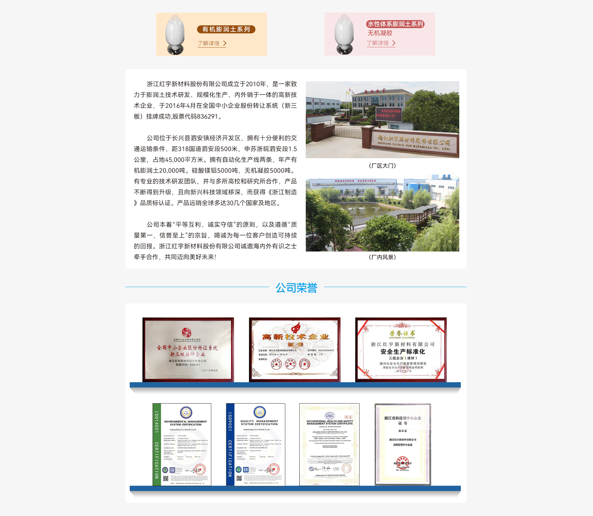 有机膨润土 HY-S2 浙江红宇新材料股份有限公司